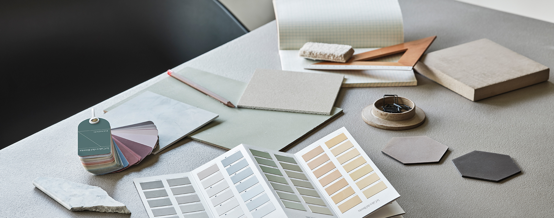Terre colorate e pigmenti naturali selezionati ispirati al paesaggio e al patrimonio artistico ed architettonico italiani: una tavolozza armoniosa, ricca di sfumature e assonanze.